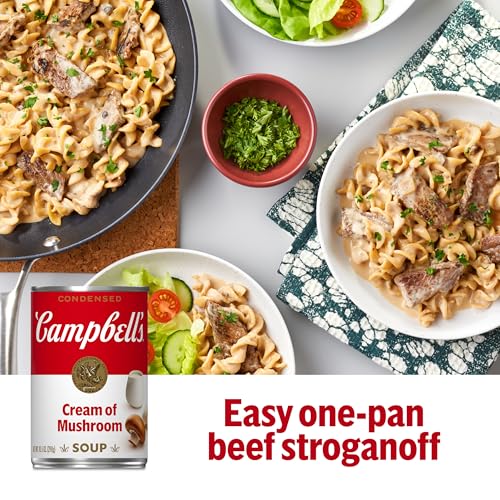 Details: Add rich, creamy flavor to your favorite dishes with Campbell’s Condensed Cream of Mushroom Soup. This vegetarian soup is crafted with mushrooms, garlic and farm-fresh cream to provide a deliciously smooth foundation to any recipe. Use it as the hero ingredient in classic dishes like green bean casserole and Swedish meatballs, or substitute it for roux or bechamel as a sauce starter. Campbell’s convenient canned soup is a year-round pantry staple and a must-have for creating something quick and easy. It’s also delicious on its own, topped with fresh herbs or a drizzle of olive oil, or enjoyed with a sandwich or salad. Simply mix the condensed soup with 1 can of water or milk and microwave on high for 3 to 3.5 minutes in a covered microwave-safe bowl, or heat in a pot on the stove, stirring occasionally. Each 10.5 oz recyclable can contains about 2.5 servings of microwave soup and features an easy-open pop top and a non-BPA lining. From Cream of Mushroom to Chicken Noodle and everything in between, Campbell’s makes delicious soups in flavors your family knows and loves, with quality, farm-grown ingredients in every can. M’m! M’m! Good!