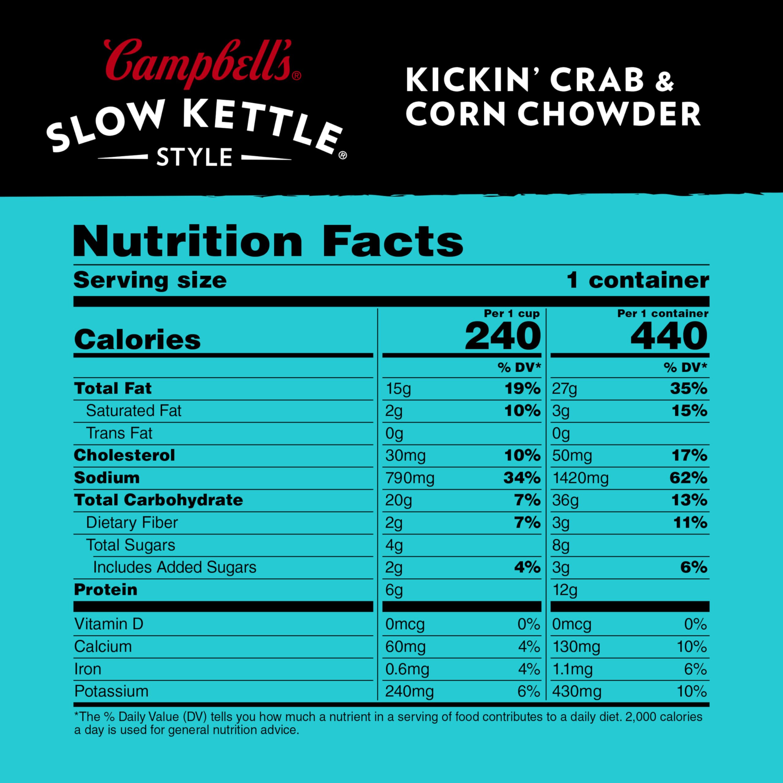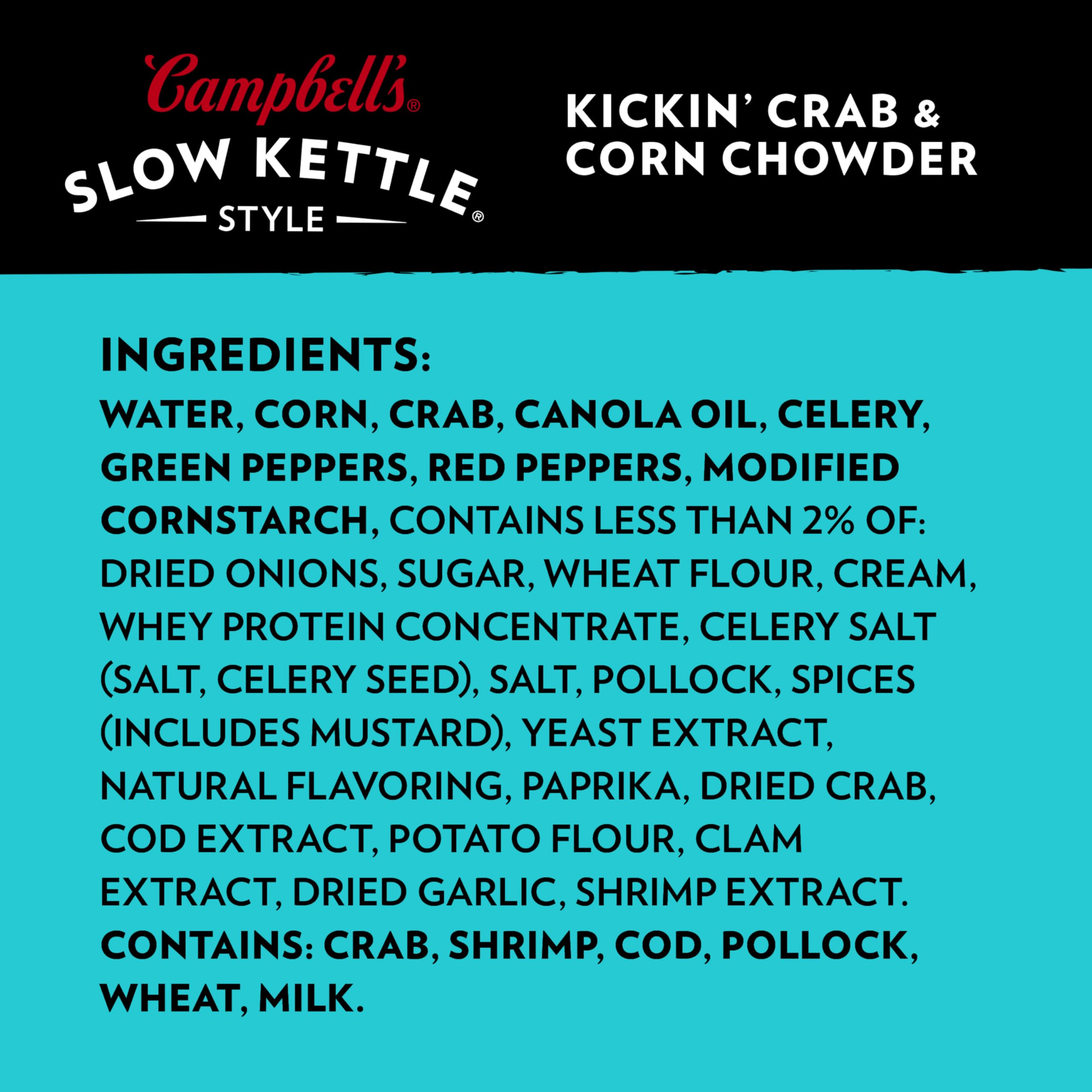 • TIME IS OUR MOST IMPORTANT INGREDIENT: Slow Kettle Style Kickin’ Crab and Corn Chowder is simmered to perfection for an indulgent taste that will make you want to slow down and enjoy every spoonful