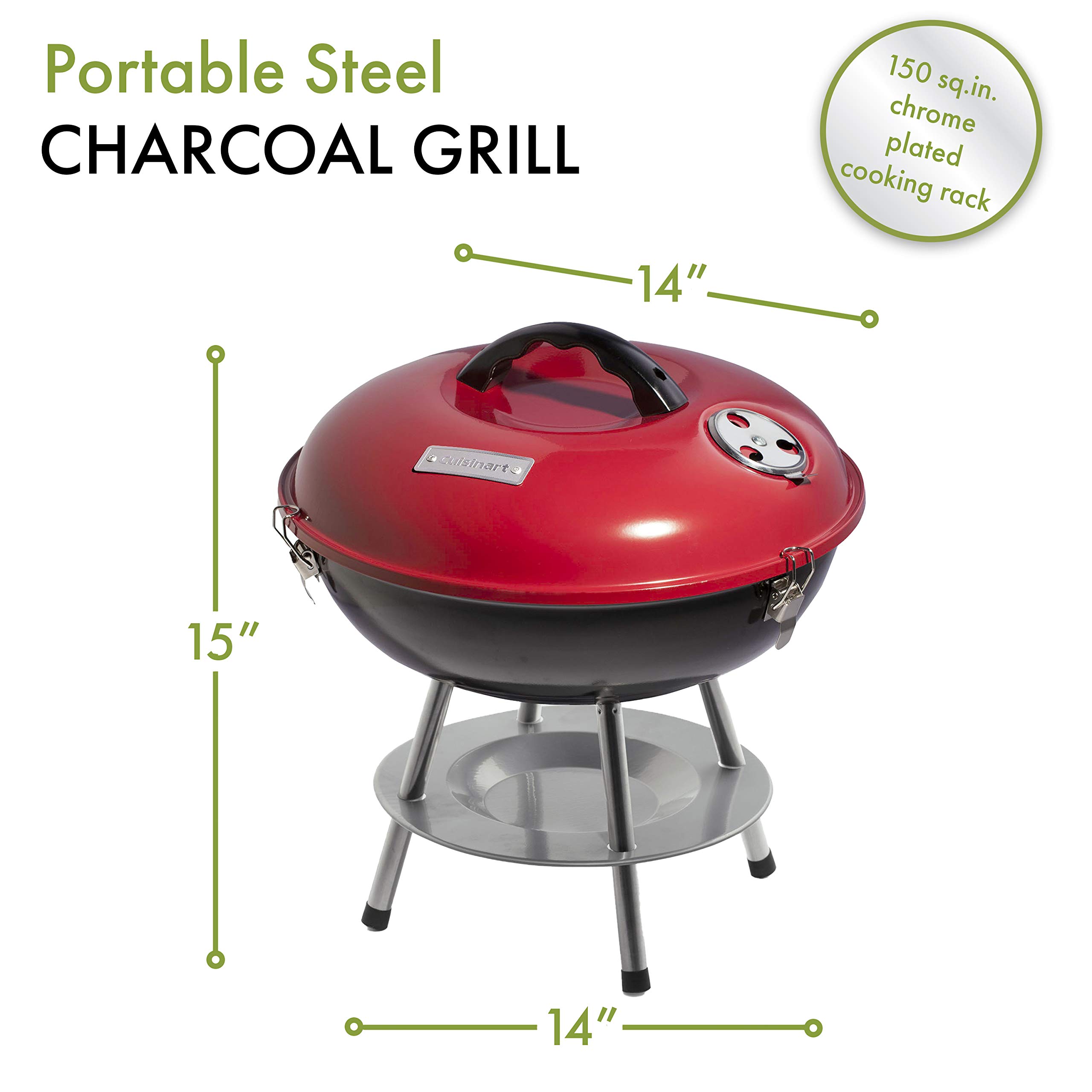 Cuisinart 14″ Inch BBQ, 14″ x 14″ x 15″, Portable Charcoal Grill, (Red), CCG-190RB