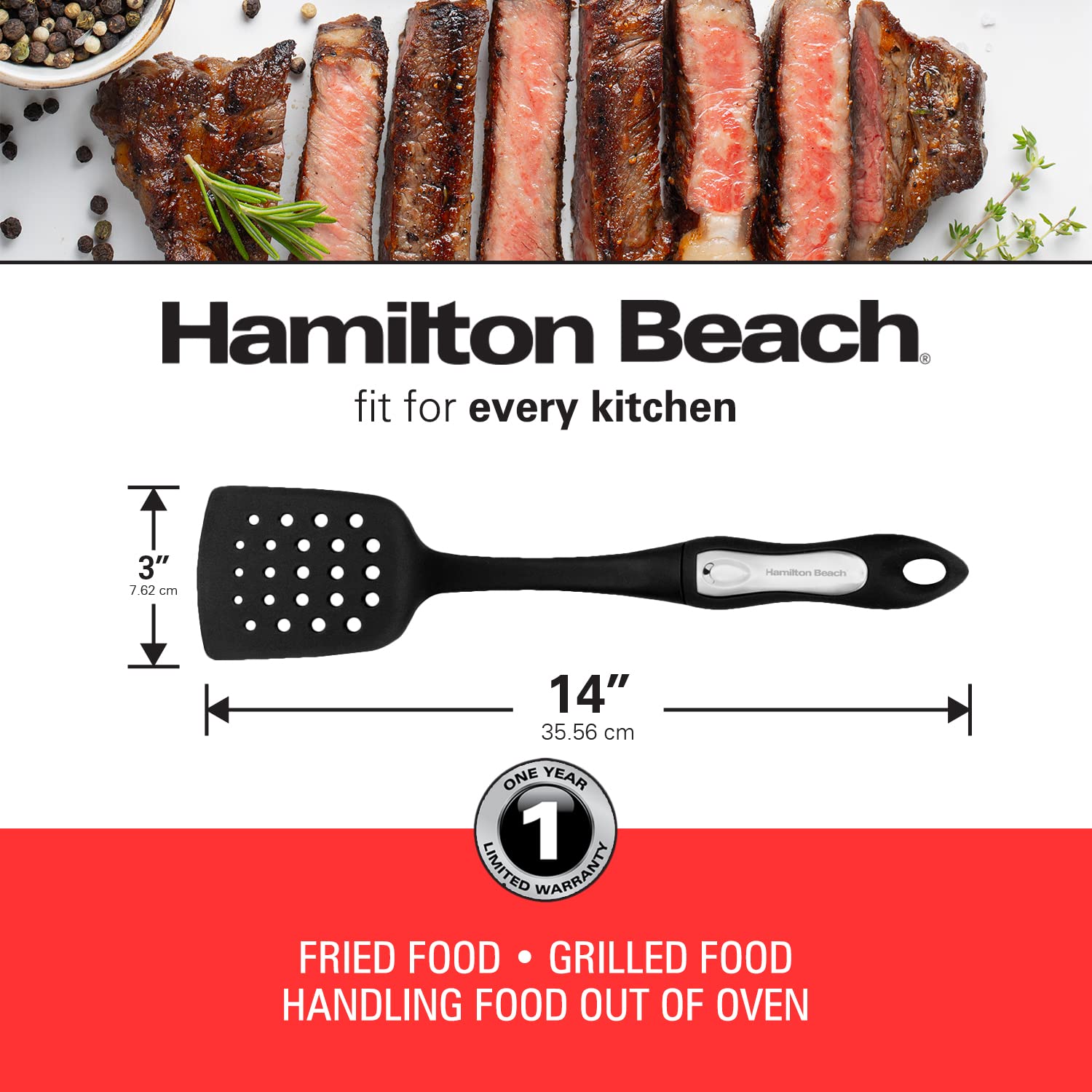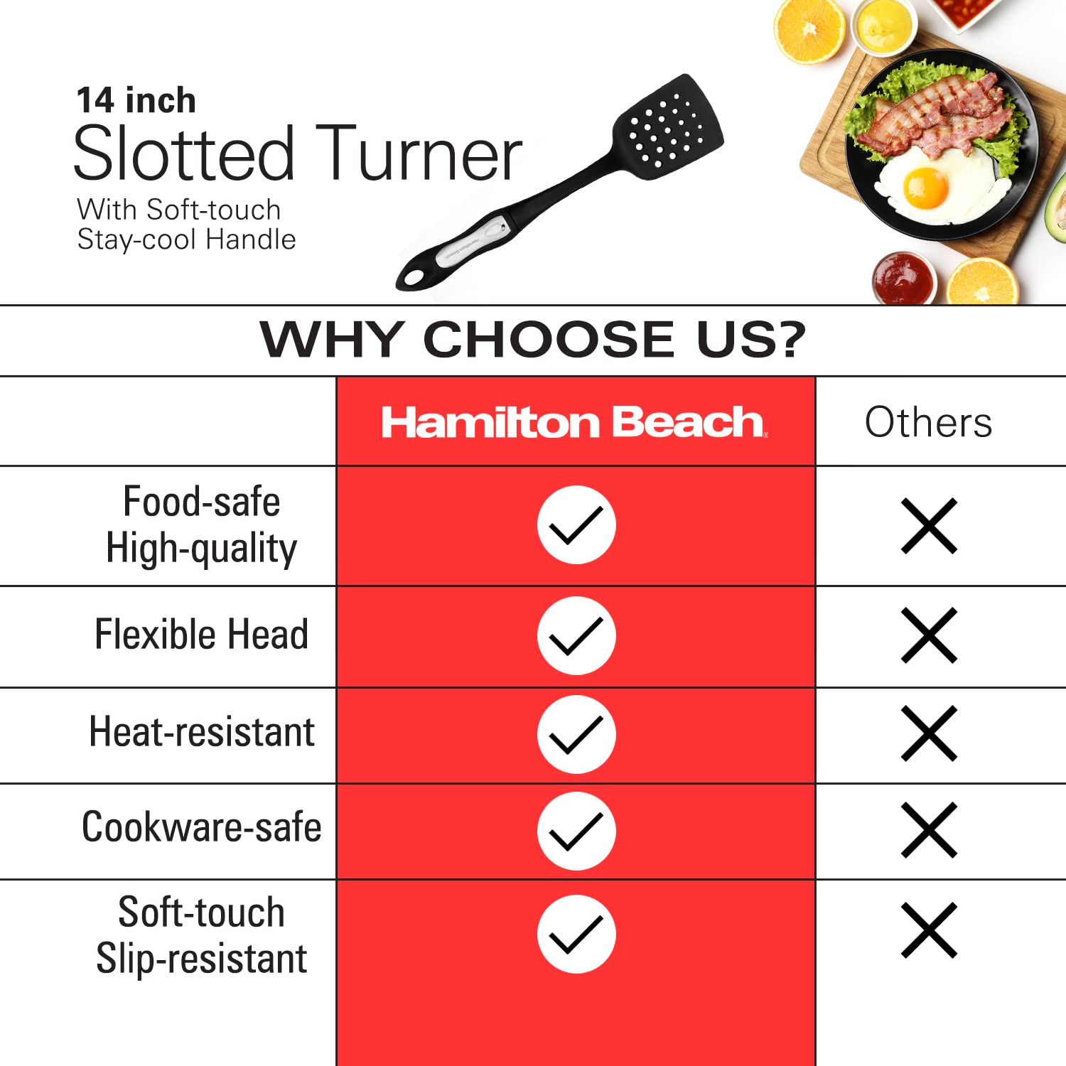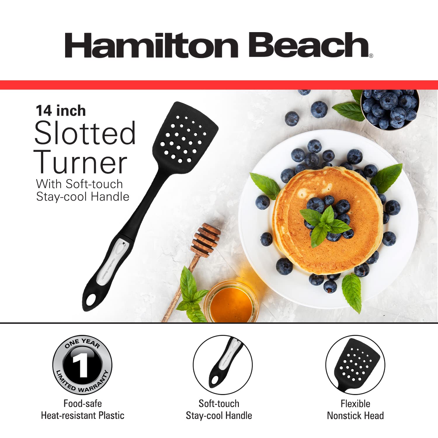 Hamilton Beach Slotted Spatula Turner Hard Plastic Heat-Resistant 14in Soft-Touch Ergonomic Handle Heavy Duty, Spatulas Turner for Vegetables & Flipping, Fish, Eggs, Pancakes, & Cookies (Black)