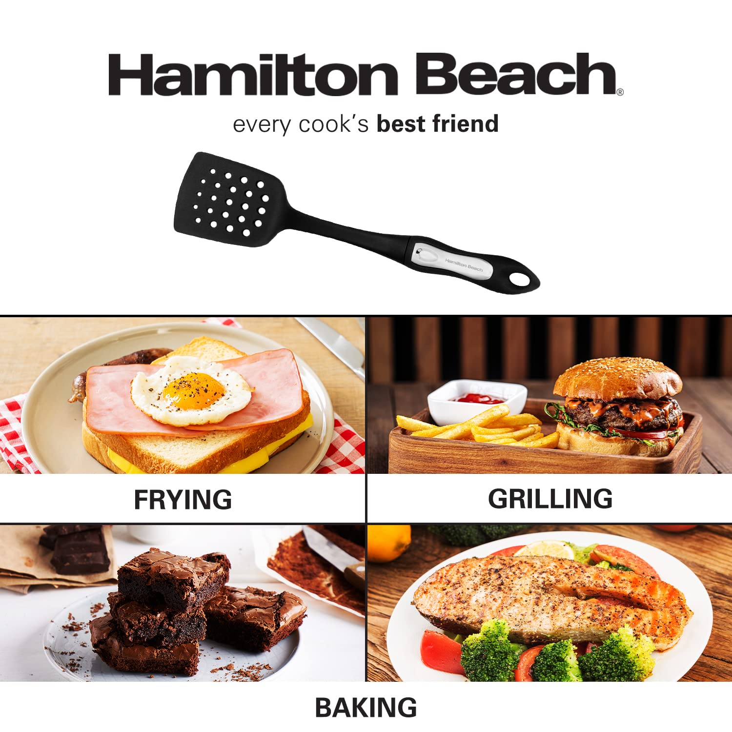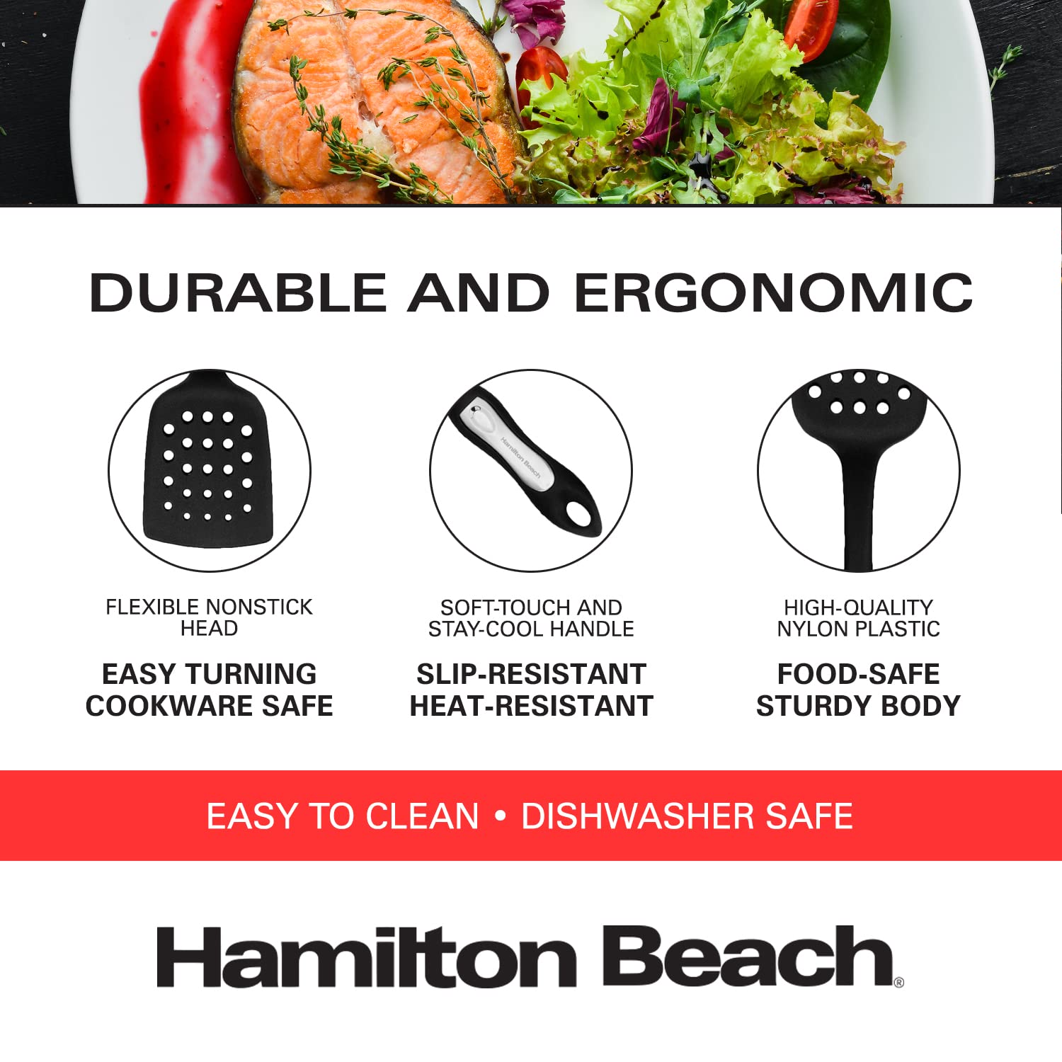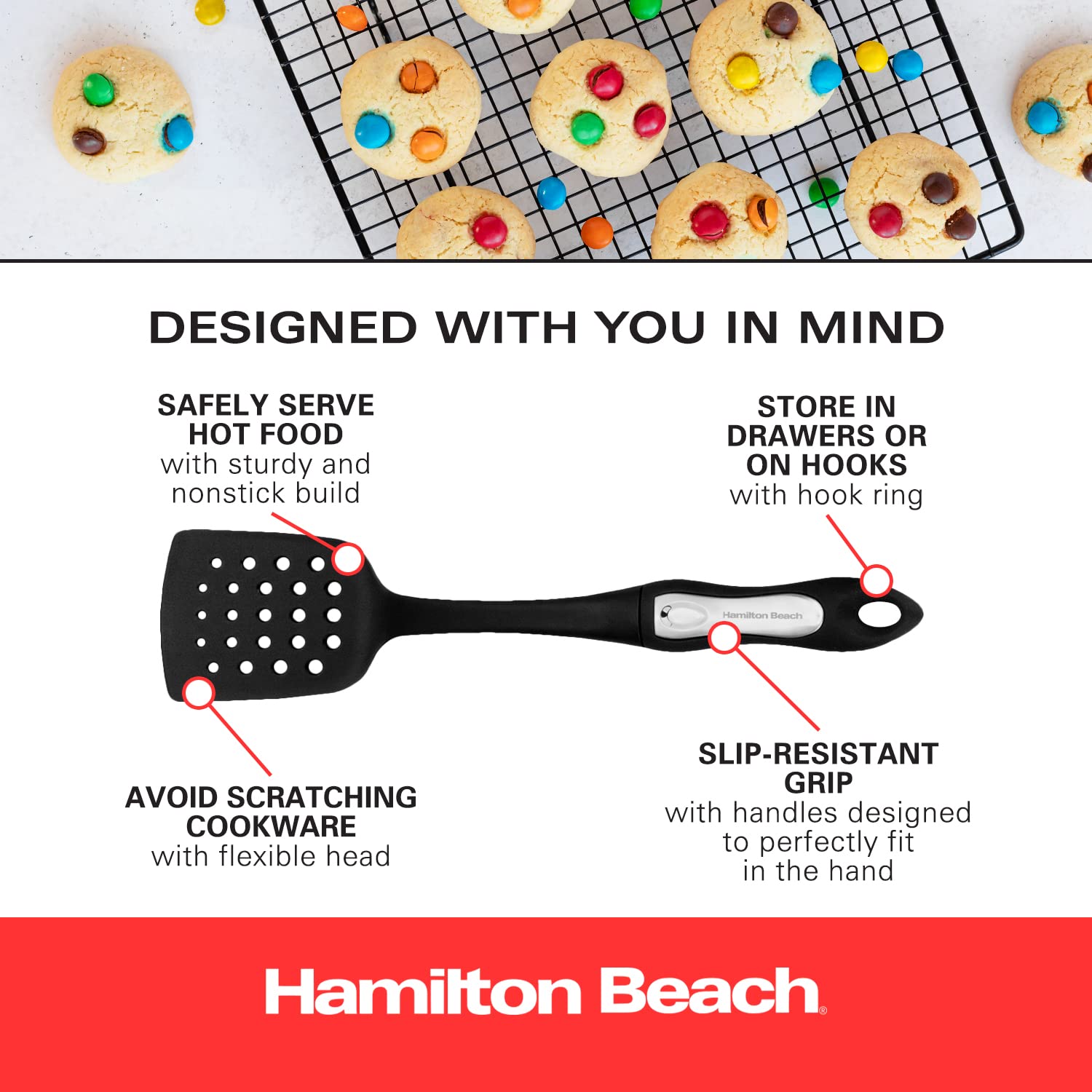 Hamilton Beach Slotted Spatula Turner Hard Plastic Heat-Resistant 14in Soft-Touch Ergonomic Handle Heavy Duty, Spatulas Turner for Vegetables & Flipping, Fish, Eggs, Pancakes, & Cookies (Black)