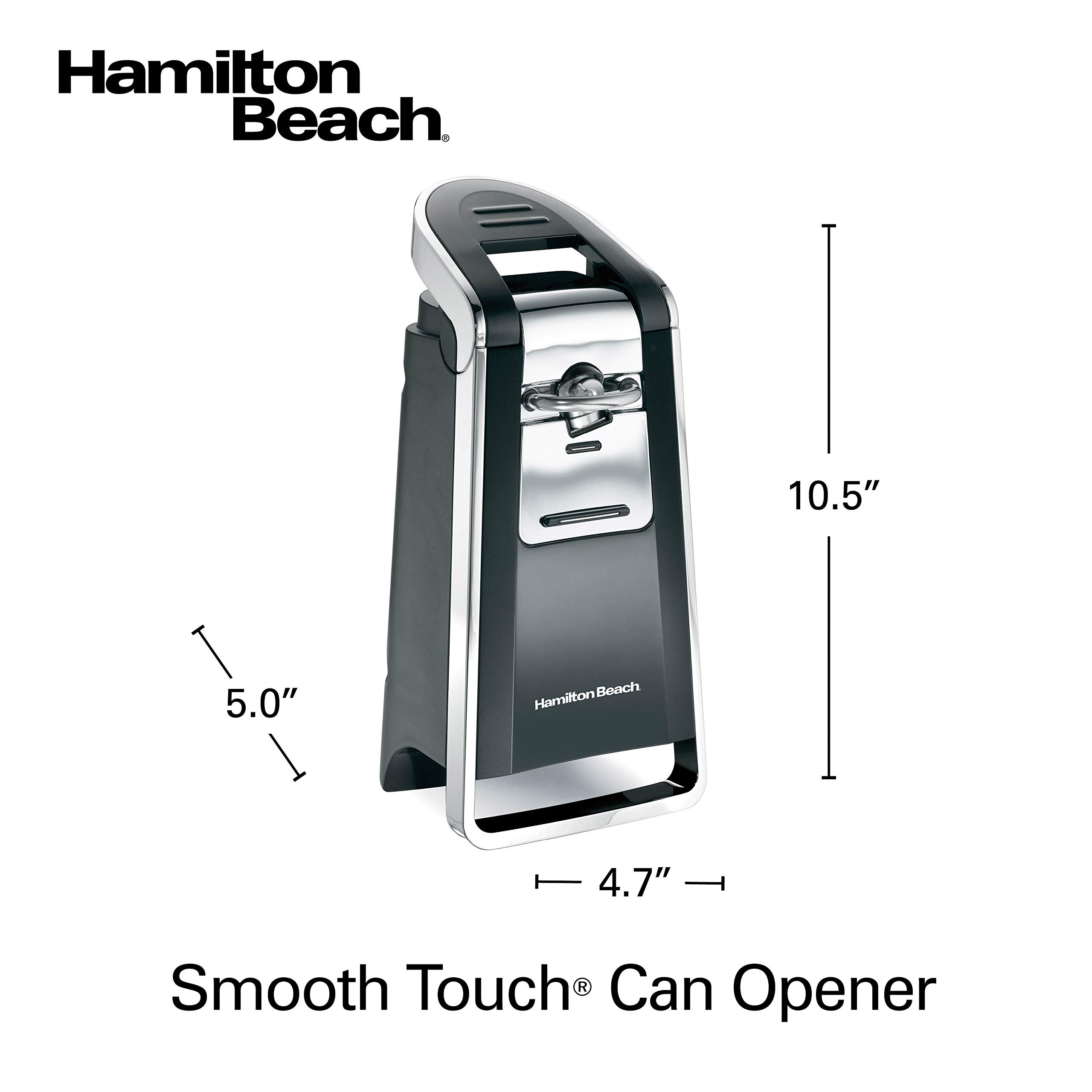 - EASILY OPEN CANS WITH ONE HAND: Designed with an easy-touch opening lever, this Hamilton Beach can opener easily opens cans with a light touch using one hand; Just align the can and lightly press the lever