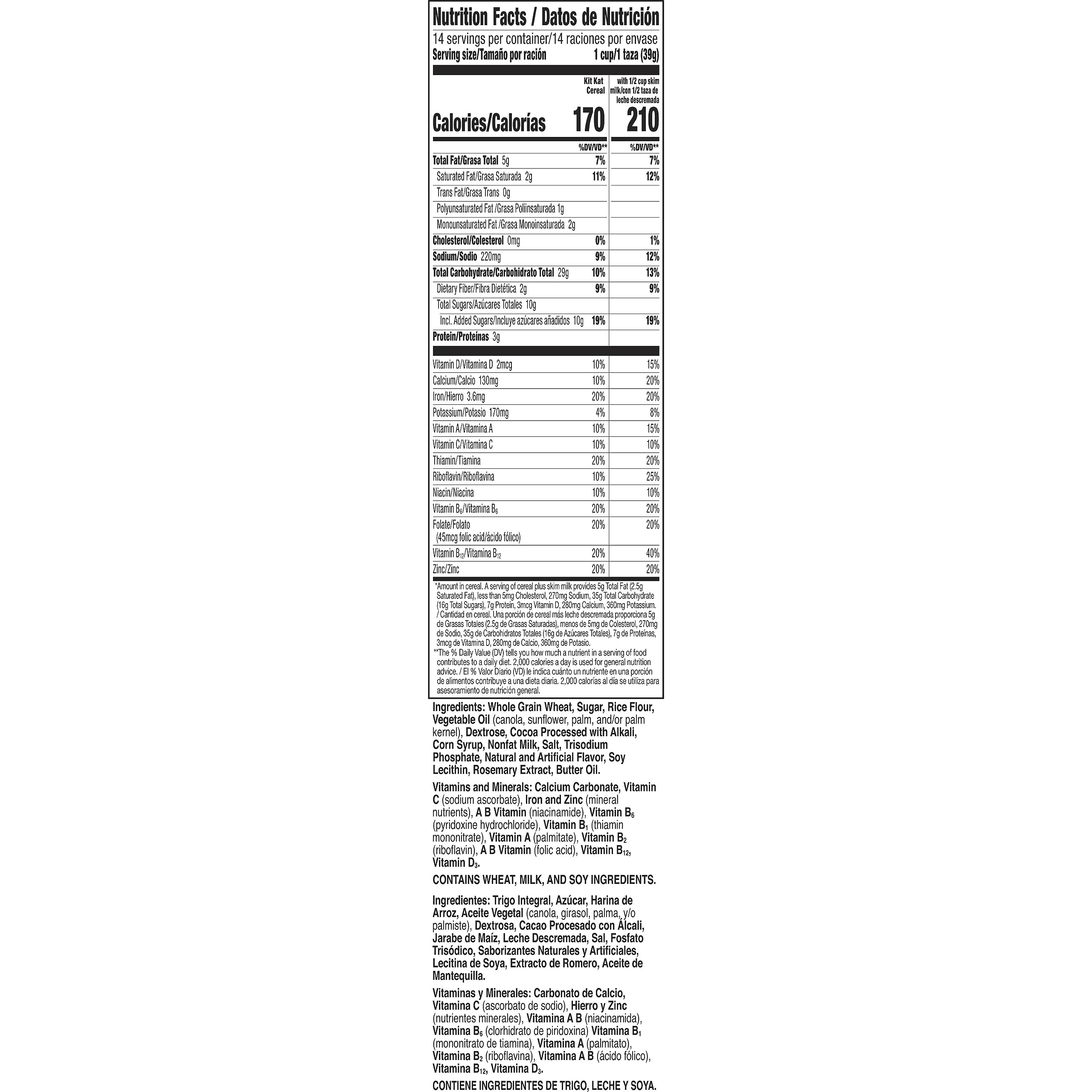 - CONTAINS: one 19.5 oz family size cereal box of General Mills KIT KAT Cereal