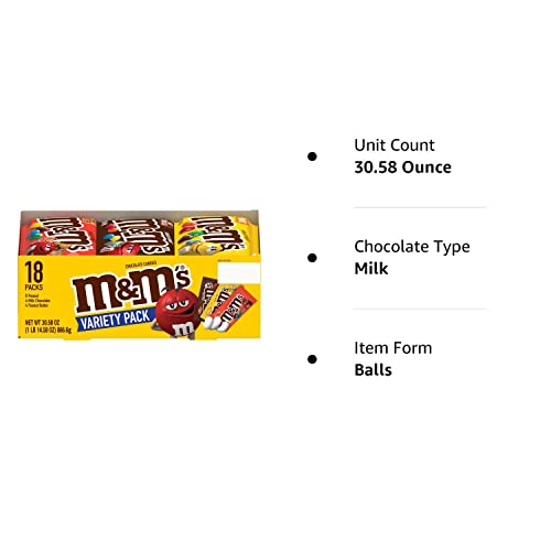 - Contains one (1) 30.58-ounce Individually Wrapped M&M’S Chocolate Full-Sized Bulk Variety Pack, including (8) Peanut M&M’S Candy, (6) M&M’S Milk Chocolate Candy and (4) Peanut Butter M&M’S Candy