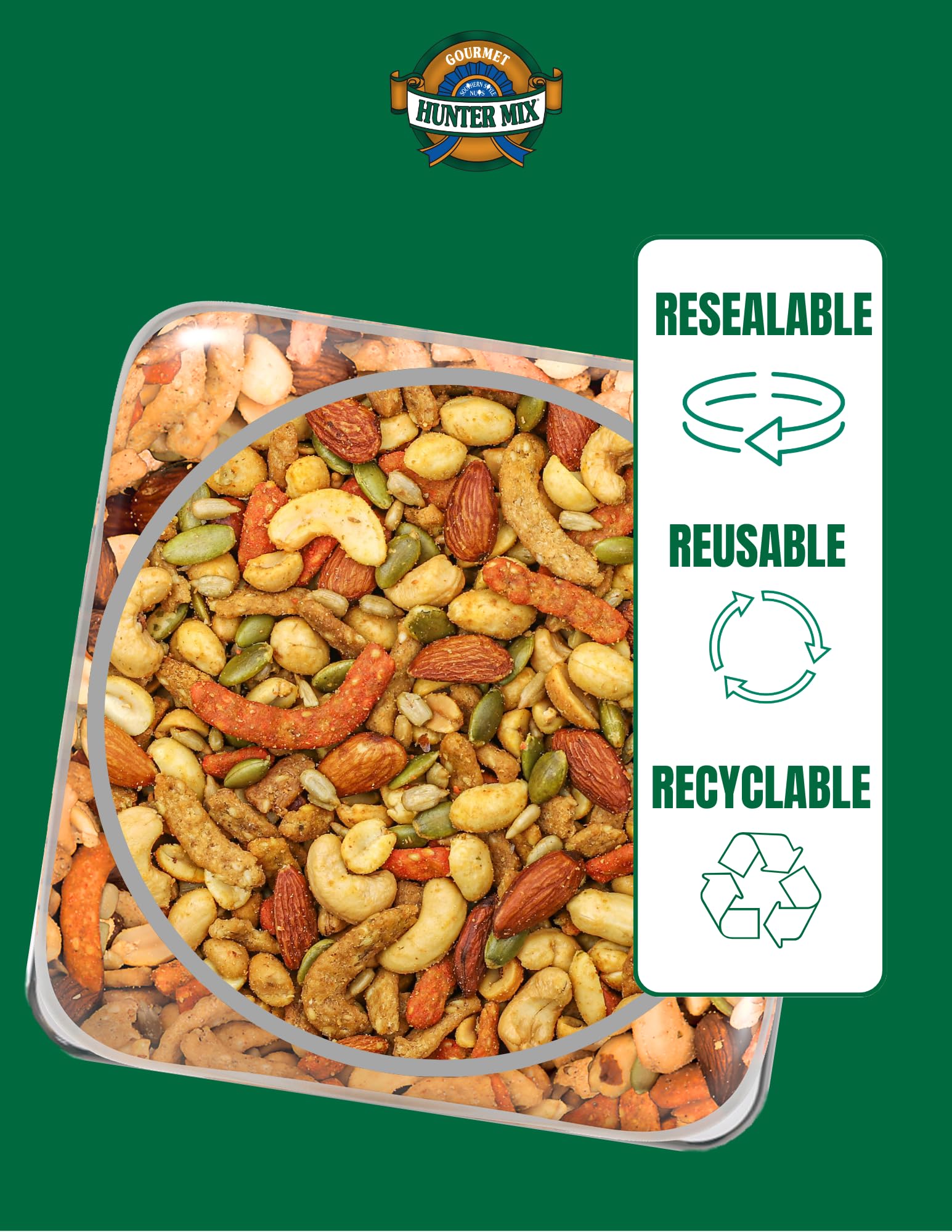 • Savory Deliciousness ─ An irresistible blend of sesame sticks, roasted peanuts, sunflower kernels, almonds, cashews, and pepitas, Gourmet Hunter Mix is infused with a unique medley of spices for a flavorful and crunchy experience