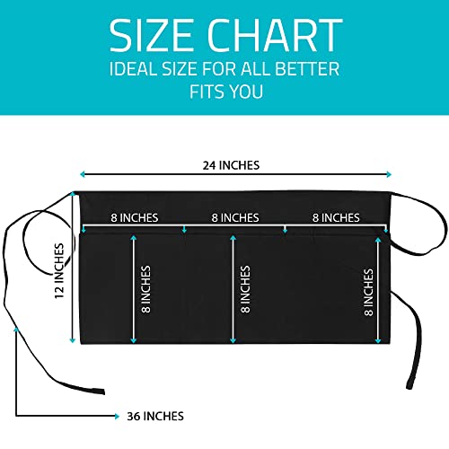 Utopia Wear 3 Pockets Waist Apron [Pack of 12], Server Waitress short apron for Women Men, Kitchen, Restaurant and Crafting (Black)